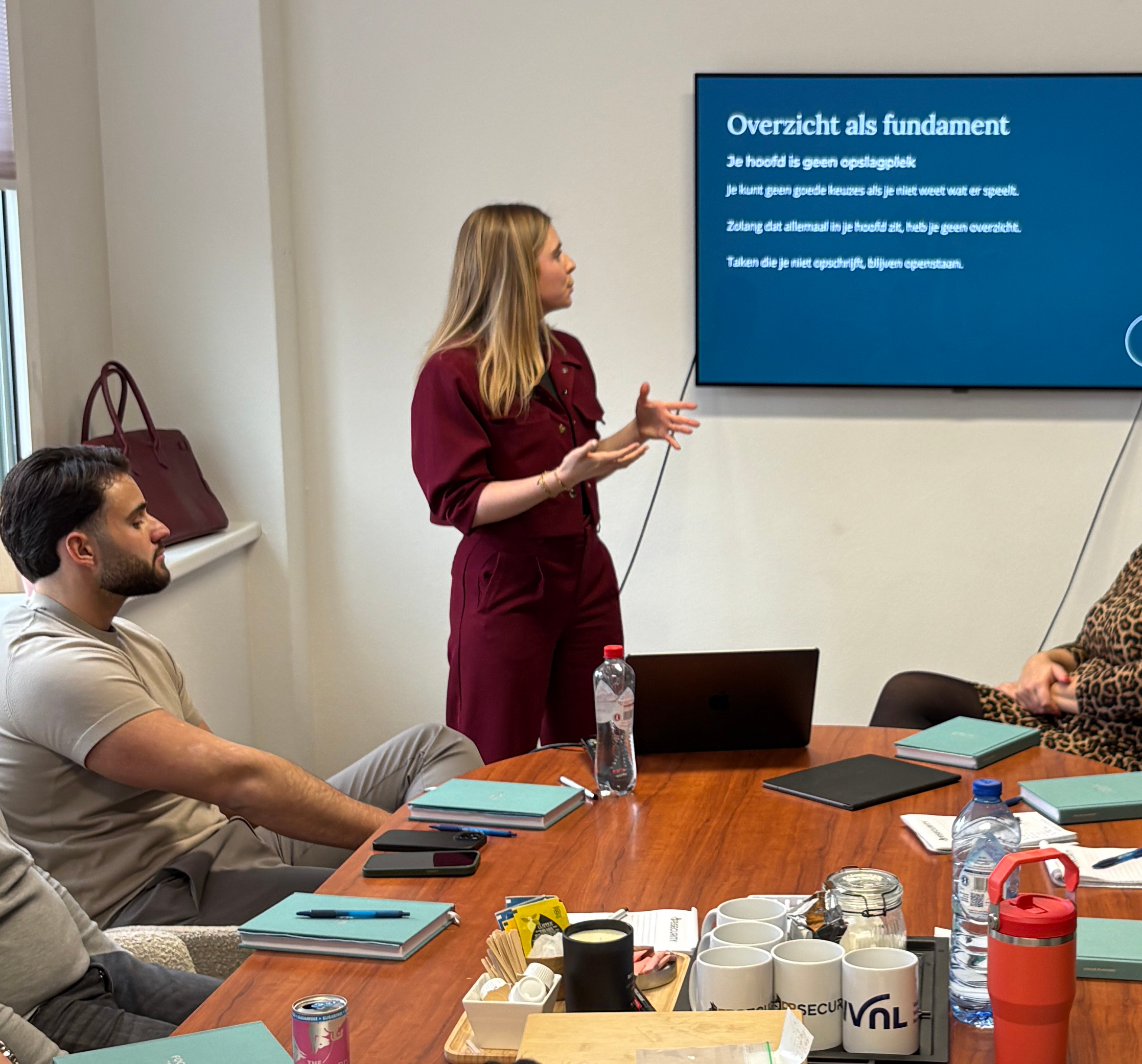 In haar werk ziet zij hoe drukte en versnippering effectiviteit in de weg kunnen staan. Vanuit die praktijk ontwikkelde zij een heldere methode om overzicht te creëren, prioriteiten te bepalen en focus structureel in te bouwen in de werkdag.